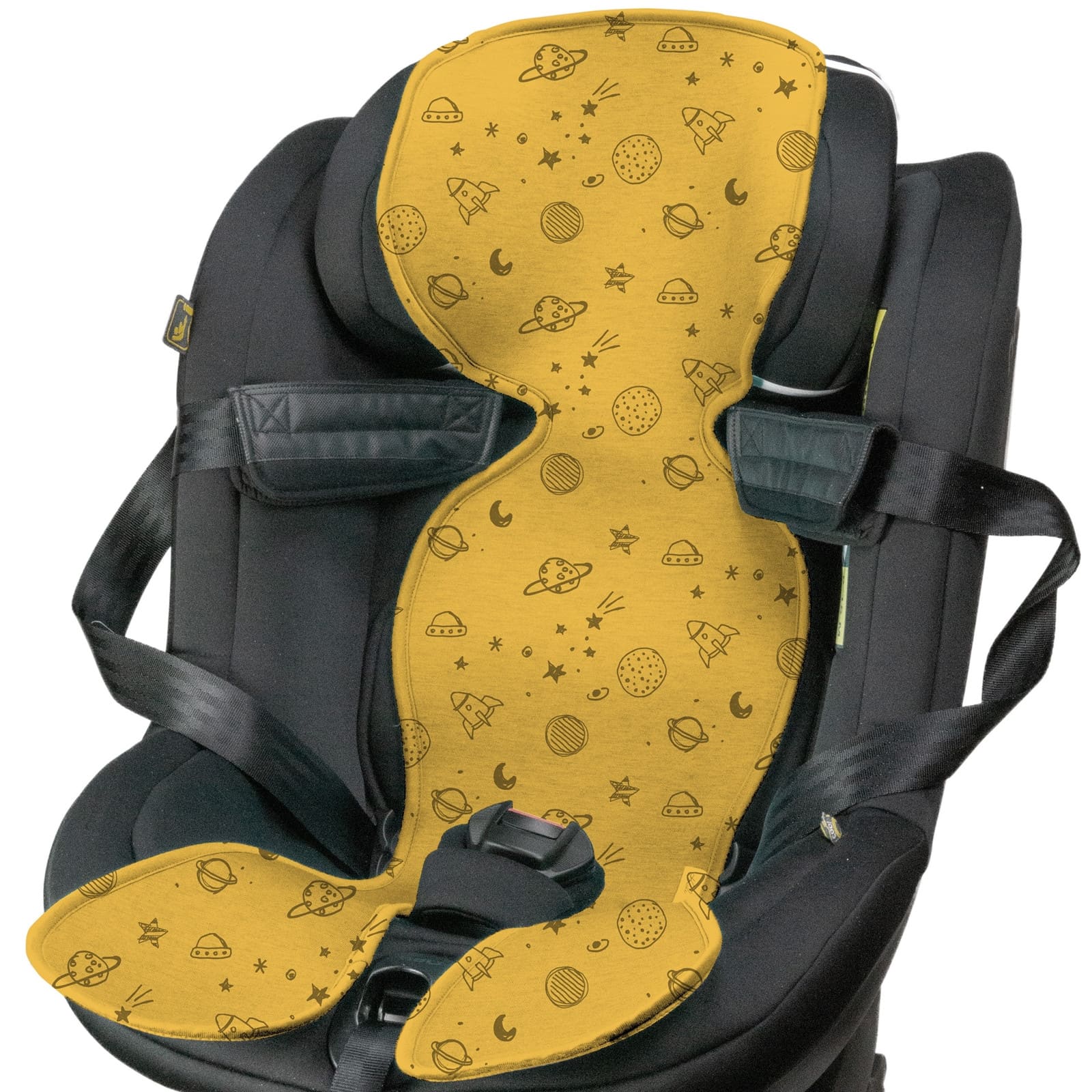 Die Sitzauflage ist auf Sitzgruppen 1 zugeschnitten (ca. 9–18 kg) und passt auf die meisten Kinderautositze. Aussparungen für Gurte und Kopfstützen sowie einfache Befestigungspunkte ermöglichen schnellen und sicheren Einbau.